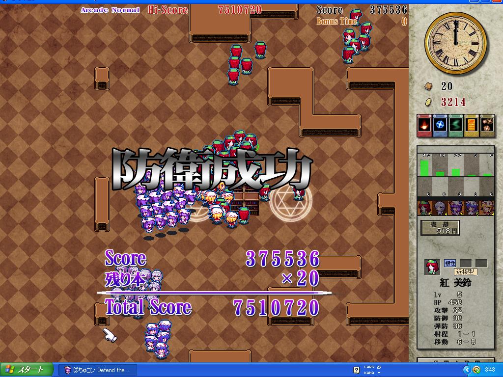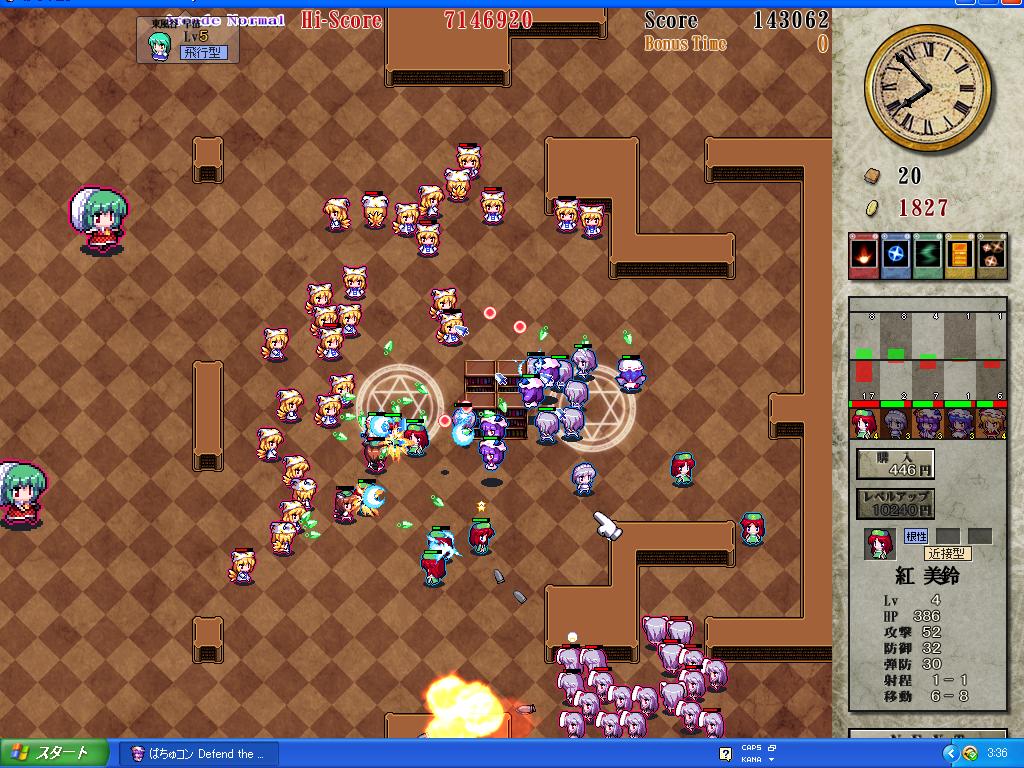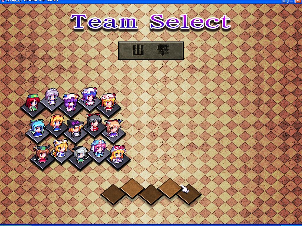 どういうゲームかというと、なんか小っちゃい泥人形東方キャラが大群で本を盗みにくるので、こっちも大量の泥人形で迎え撃って本をディーフェンスディーフェンスするゲーム。